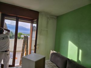 Appartamento umido e disabitato senza riscaldamento, con pochissimi gradi fuori e tanta pioggia! I nostri materiali inodore e a rapida essiccazione ci permettono di lavorare in qualunque situazione!